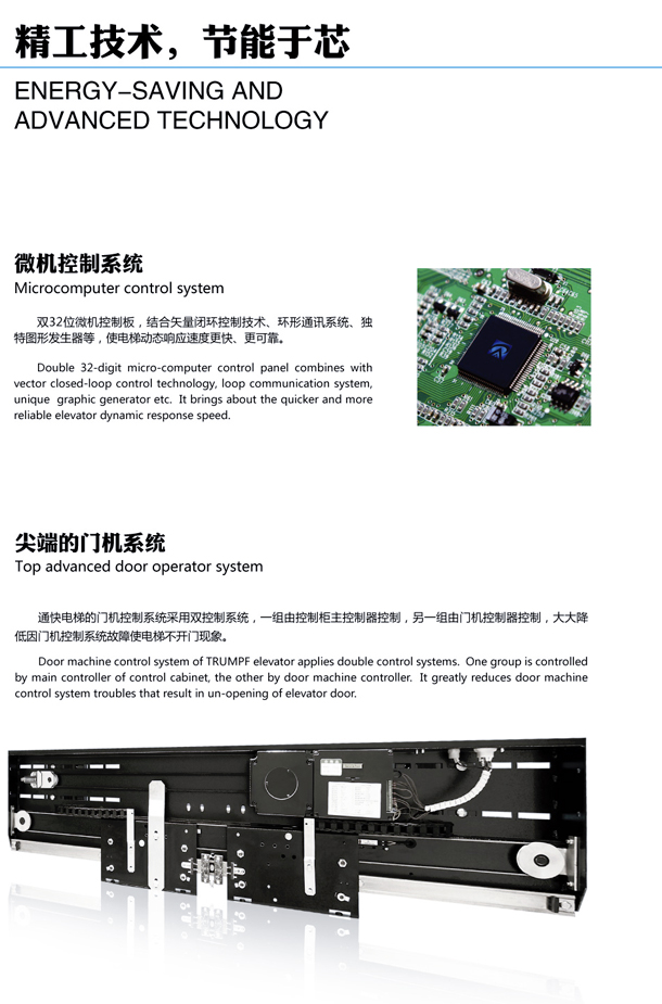 商洛菱通所提供產(chǎn)品的三大核心部件-“主機(jī)”、“門機(jī)”和“控制柜”以及四大安全部件-“安全鉗、“限速器”、緩沖器、"上行超速保護(hù)"均原廠原品牌并自主知識(shí)產(chǎn)權(quán)和專利技術(shù)。電梯加裝采用四大節(jié)能系統(tǒng),即能量回饋系統(tǒng)、永磁同步門機(jī)、無齒輪技術(shù)、LED照明系統(tǒng)、安全系統(tǒng)成熟。