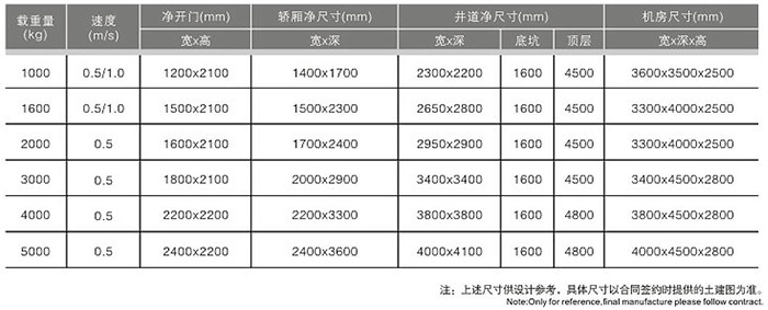始終貫徹堅(jiān)固、優(yōu)質(zhì)的設(shè)計(jì)理念,結(jié)合了成熟可靠的曳引技術(shù)與微機(jī)控制技術(shù),采用不同的轎廂尺寸和具有特殊堅(jiān)固設(shè)計(jì)的高強(qiáng)度型材的轎廂底盤,可以運(yùn)送不同噸位的貨物,載重能力強(qiáng),能適應(yīng)不同大樓內(nèi)的運(yùn)輸環(huán)境。最高載重量可達(dá)10噸。